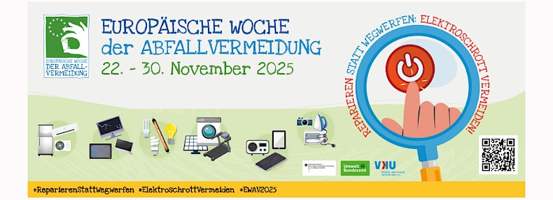 Unter dem Motto „Reparieren statt Wegwerfen – Elektroschrott vermeiden“ ist nun der Anmeldezeitraum zur 17. Europäischen Woche der Abfallvermeidung (EWAV) gestartet.