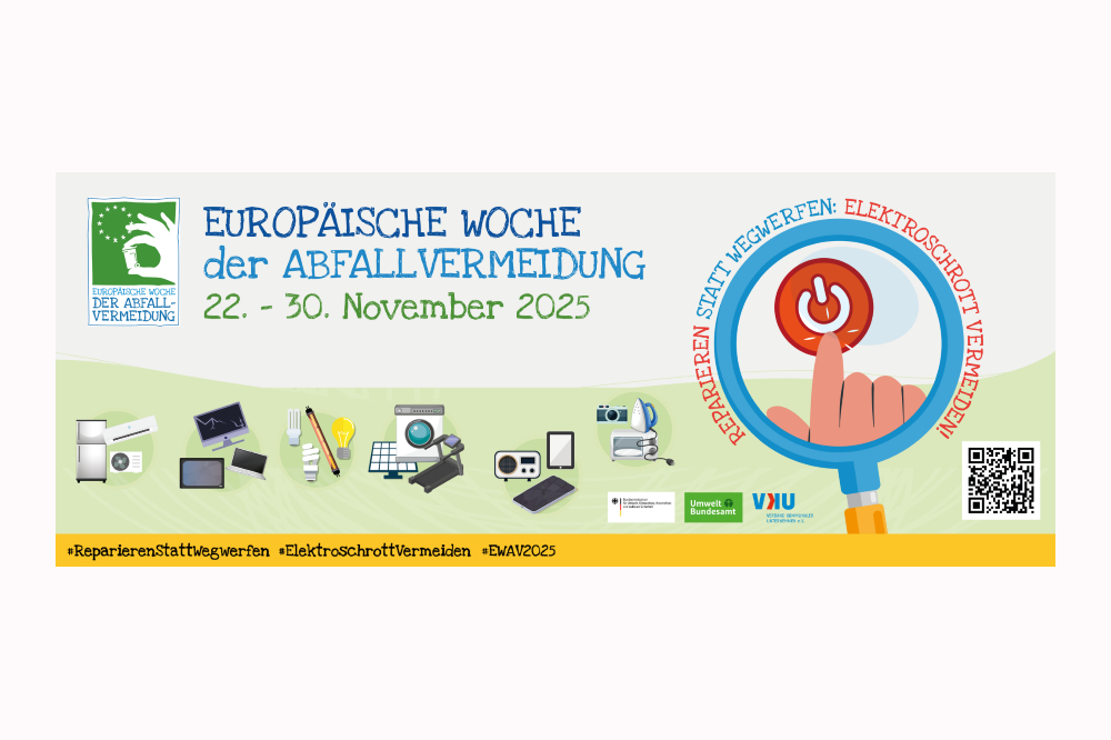 Die Europäische Woche der Abfallvermeidung setzt den Schwerpunkt in diesem Jahr deshalb europaweit vom 22. bis 30. November 2025 auf die wachsende Menge an Elektroschrott. Ziel ist es, das Bewusstsein für die Bedeutung von Reparatur, Wiederverwendung und nachhaltigem Konsum zu stärken.