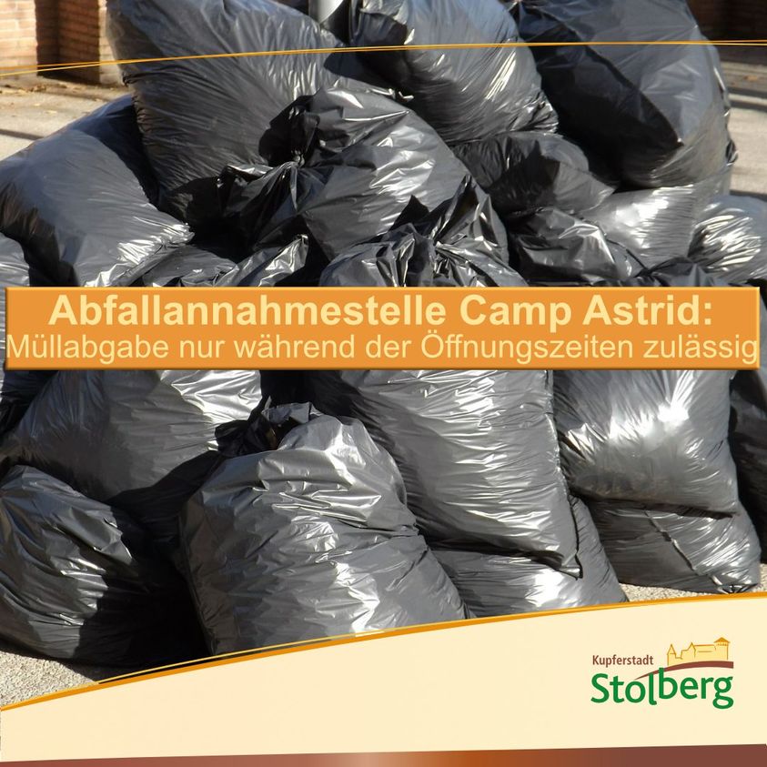 Für im Zuge der Hochwasserkatastrohe angefallenen Müll hat die Kupferstadt Stolberg in Zusammenarbeit mit der AWA eine Abfallannahmestelle am Camp Astrid eingerichtet (Königinnen-Astrid-Straße, an der Rechtskurve linke Einmündung in Richtung Saubach).