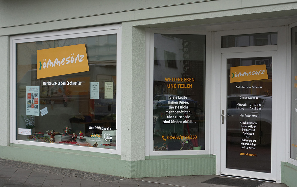 Viele Leute besitzen Gegenstände, die sie nicht mehr benötigen. Sie sind aber zu schade für den Abfall. Andere Menschen suchen genau diese Gegenstände. Im „Ömmesönz-Laden“ werden gebrauchte Dinge als Spenden angenommen und kostenlos wieder abgegeben.