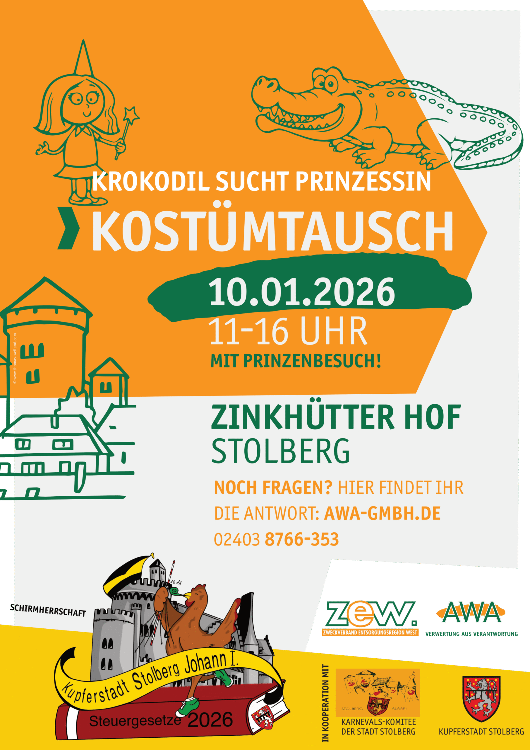 Getauscht werden Kostüme für Kinder und Erwachsene, egal, ob Krokodil, Prinzessin oder – ganz klassisch – Clown. In den Kleiderschränken der Stolberger Närrinnen und Narren schlummern bestimmt viele Kostüme, die problemlos wieder genutzt werden können, ihren Besitzern aber keine Freude mehr bereiten. Corona, Kriege und die Inflation haben das Leben für uns alle teurer gemacht. Der Kostümtausch bietet nun eine Möglichkeit, sich für die Session einzukleiden, ohne tief ins Portemonnaie greifen zu müssen. Spenden und mitnehmen sind im Übrigen nicht aneinandergekoppelt. Im ersten Schritt beginnen wir jetzt mit der Sammlung von Kostümen, welche wir dann sichten, sortieren und dann zum Kostümtauschtag kostenfrei wieder abgeben.